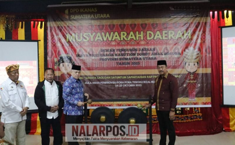Simalungun|NALARPOS.ID-Bupati Mandailing Natal (Madina) sekaligus Ketua Umum Ikatan Keluarga Nasution dohot Anak Boruna (IKANAS), H. Saipullah Nasution, secara resmi membuka Musyawarah Daerah (Musda) DPD IKANAS Sumatera Utara 2025 di Mess Pora-Pora Tengku Rizal Nurdin, Parapat, Kabupaten Simalungun, Jumat (24/10/2025).