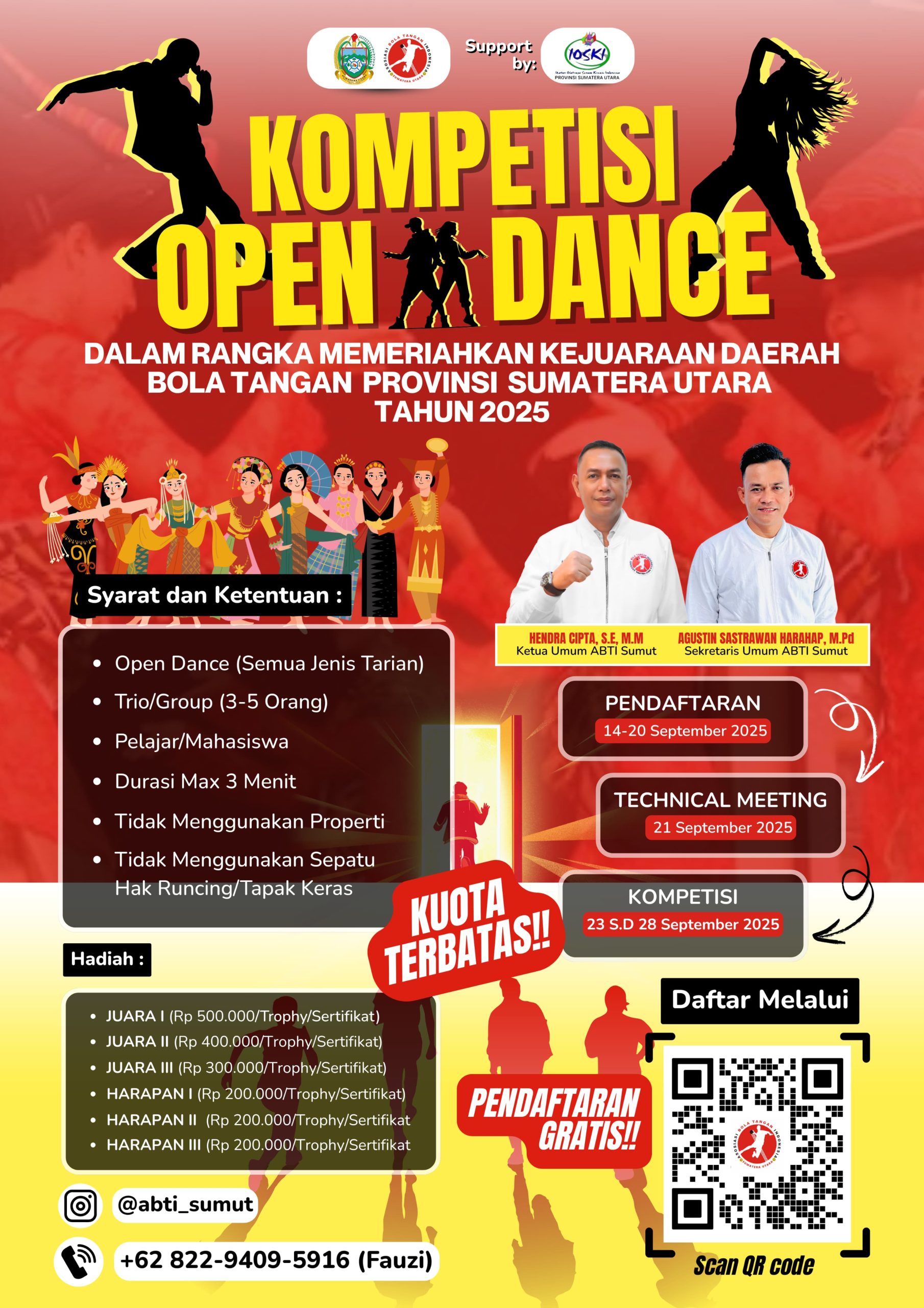 Untuk informasi lebih lanjut, silakan hubungi panitia di nomor 0852 9702 1594 (Fahri) atau kunjungi Instagram resmi @ABTI_SUMUT. (PR)